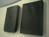 左側が添付のハードケースをつけた状態。右がDeluxeに付いてくるレザーケースです。