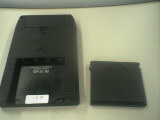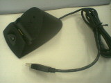 USB対応のクレードルです。PalmIII用のクレードルに比べるとかなり載せやすくなっています。いいかげんに置いてもちゃんとホールドしてくれます。また、クレードルには爪があり、Visorの背中には対応するところに穴が開いています。クレードルに置くとこれがはまって、けっこうしっかりはまってくれます。